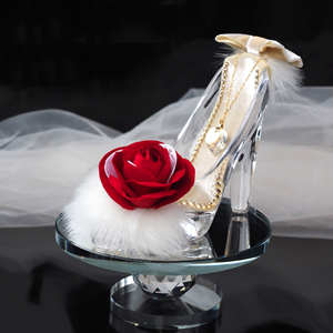 不動の一位!プロポーズ専用のガラスの靴、「Marry Me?」(結婚してください)のメッセージチャーム付き!女性なら一度は必ず憧れるシンデレラのガラスの靴、純白のボックスのふたを開けると、キラキラと輝くプリンセス・シンデレラのガラスの靴が現れます。 |